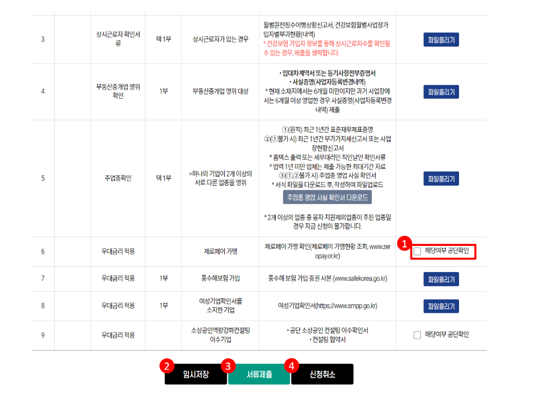 공단확인이 체크된 경우에는 해당 서류는 제출하지 않아도 됩니다. 나머지는 서류제출을 눌러 서류를 제출하시면 됩니다.