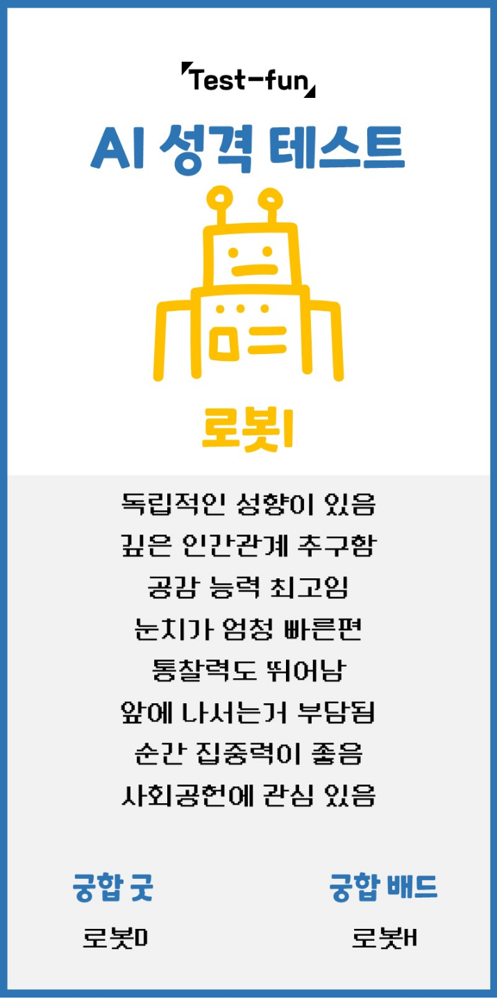 그래서 저는 여러분들이 유형을 테스트로 인해 MBTI 성격유형을 알수있게 MBTI 성격테스트 중 하나인 AI MBTI 성격유형테스트를 가져왔습니다. 다들 테스트를 해보시길 바랄게요!