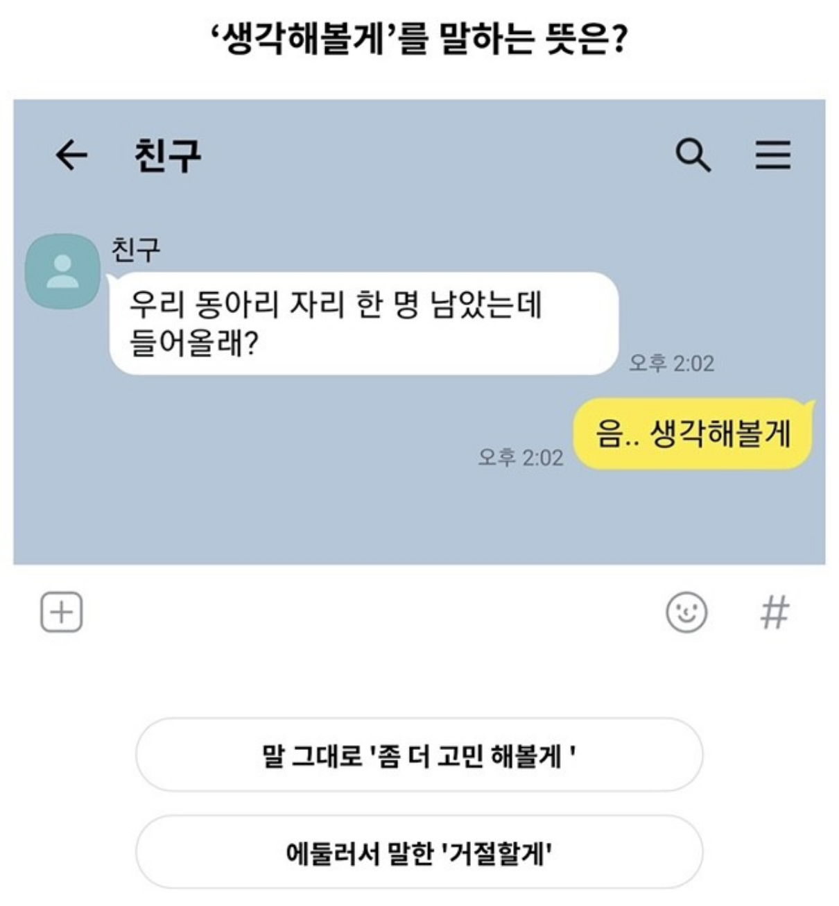 Q. '생각해볼게'를 말하는 뜻은?